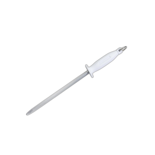 Chaira estriada de acero imantado de 25 cm. Mango antideslizante blanco para mayor control y eficiencia.