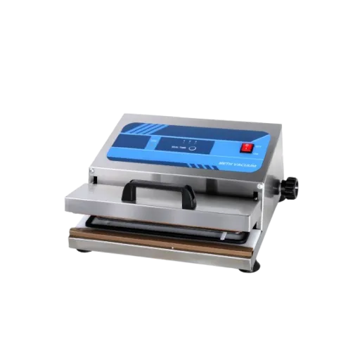 Envasadora al vacío por succión externa, automática o manual. Carcaza acero inoxidable.