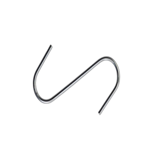 Gancho tipo S galvanizado para chorizos. Medidas: 14 cm, curvas 4×4 cm.