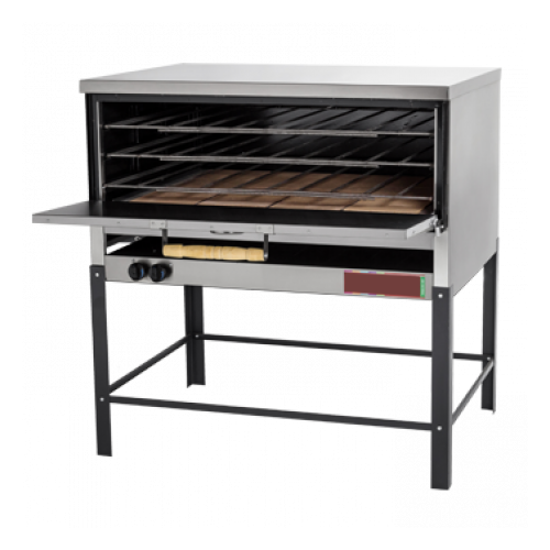 Cámara de cocción enlozada con piso de tejuelas refractarias.