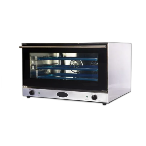 El horno convector funciona utilizando dos ventiladores y un sistema de circulación de aire caliente para cocinar los alimentos de manera uniforme y eficiente. Diseñado para una cocción rápida y homogénea, es ideal para hornear pasteles, galletas y otros productos que requieren una distribución uniforme del calor.