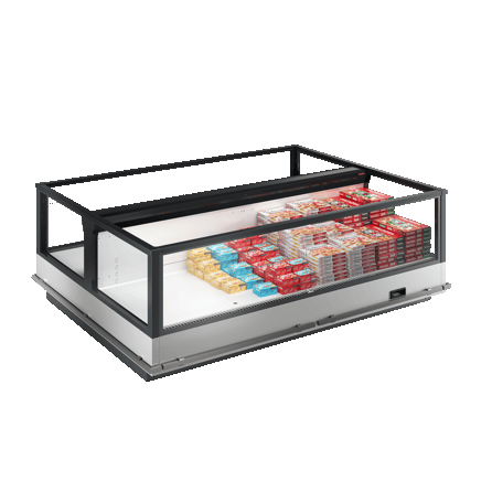 El modelo OSLO IMO-A BT V es un mural horizontal abierto para la conservación de productos congelados, adecuado para la venta en autoservicio. Disponible con motor remoto/incorporado, utiliza gases R452 y R290, con clase de temperatura L3.