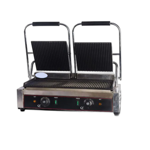 Ideal para preparar sándwiches calientes y deliciosos en entornos comerciales. Este modelo doble ofrece flexibilidad y control preciso con termostatos y encendidos independientes para cada plancha.